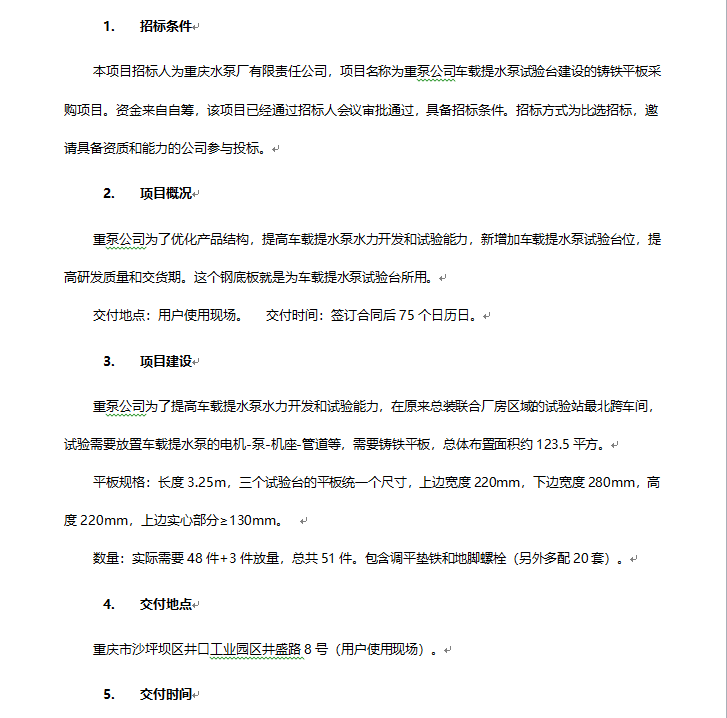 重泵公司車載提水泵試驗(yàn)臺建設(shè)項(xiàng)目 鑄鐵平板 比選公告