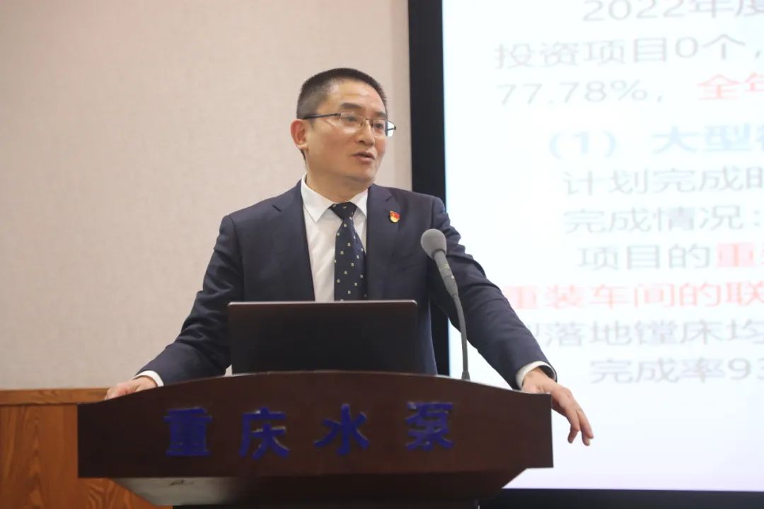 公司黨委副書記、紀(jì)委書記、工會(huì)主席李衛(wèi)作了《深學(xué)黨的二十大精神,全面從嚴(yán)治黨,奮力書寫重泵公司高質(zhì)量發(fā)展新篇章》的黨委工作報(bào)告,副總經(jīng)理潘志敏作了市場和質(zhì)量工作報(bào)告,副總經(jīng)理何智奎作了生產(chǎn)運(yùn)行報(bào)告,財(cái)務(wù)副總監(jiān)劉佳玲作了財(cái)務(wù)工作報(bào)告,總工程師馬文生作了技術(shù)創(chuàng)新工作報(bào)告,副總工程師冉宏民、白小榜也分別就分管工作作了專題報(bào)告,黨委副書記、總經(jīng)理張波作了講話。