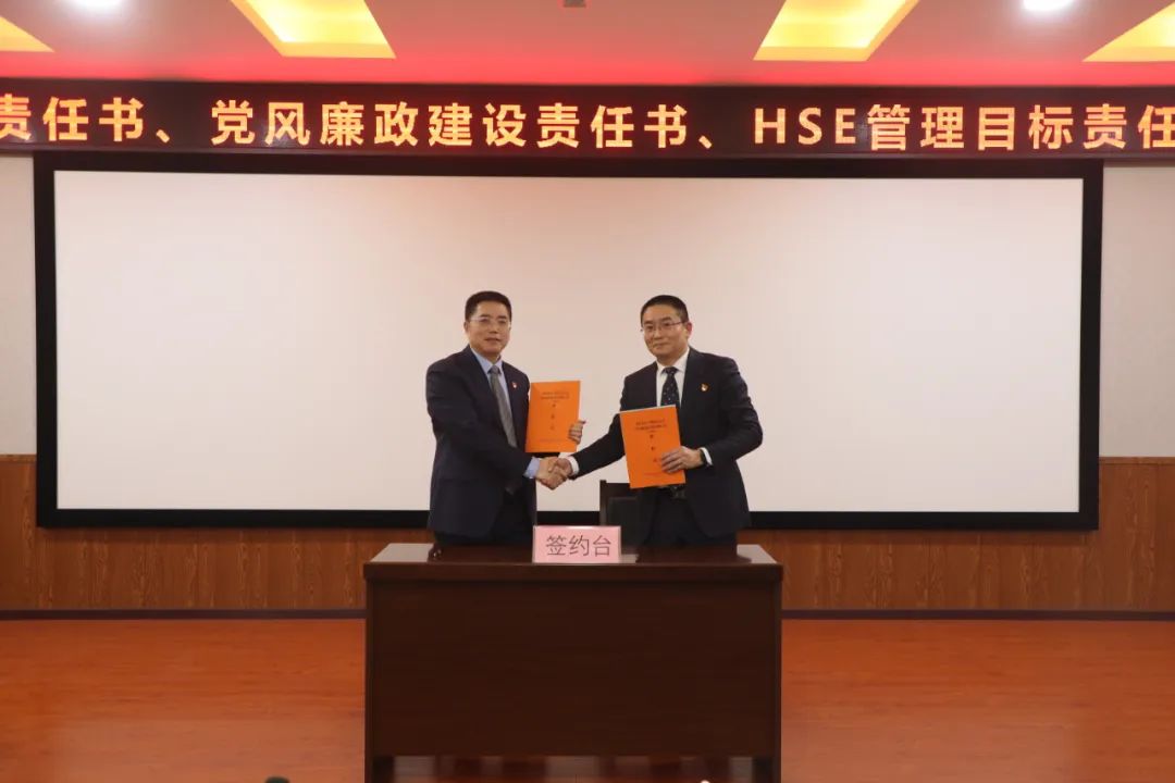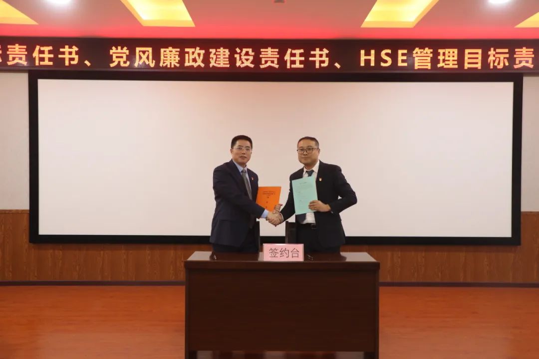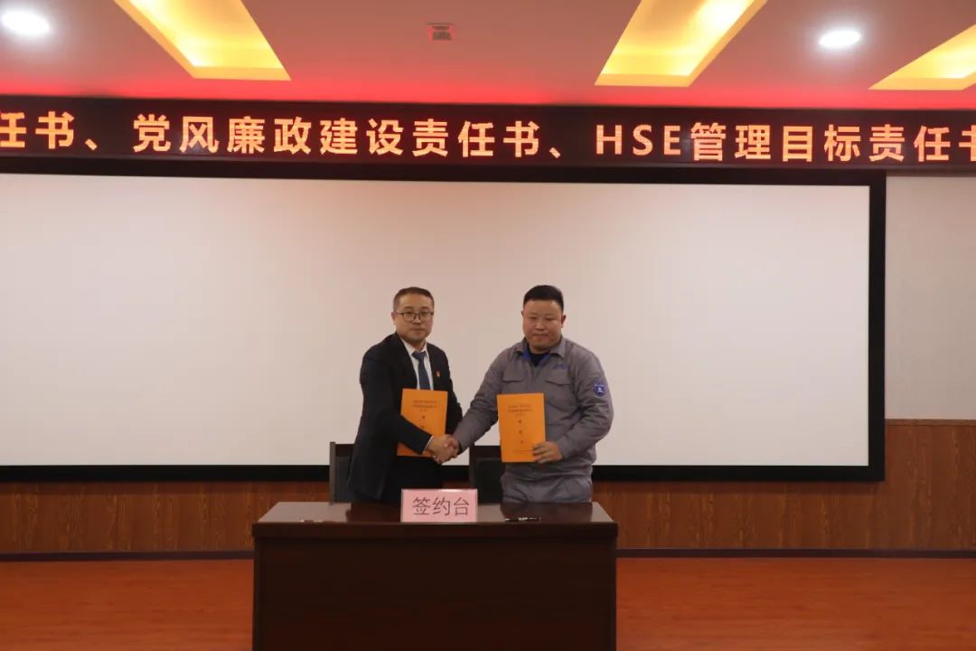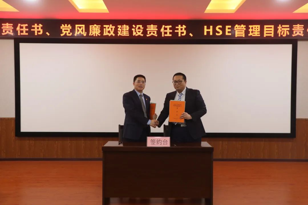 分管領(lǐng)導(dǎo)與中層干部簽訂《2023年目標(biāo)責(zé)任書》《2023年黨風(fēng)廉政建設(shè)責(zé)任書》和《HSE管理目標(biāo)責(zé)任書》