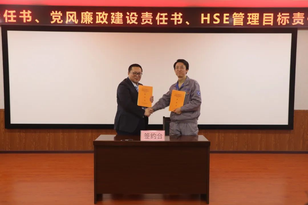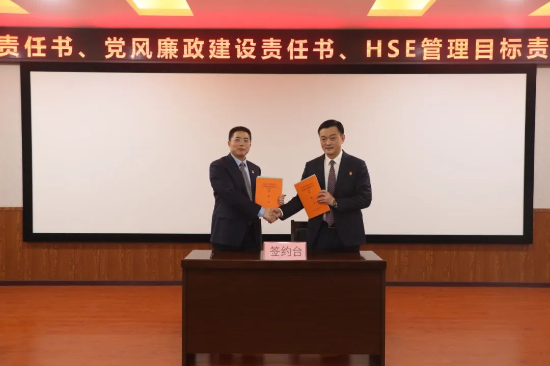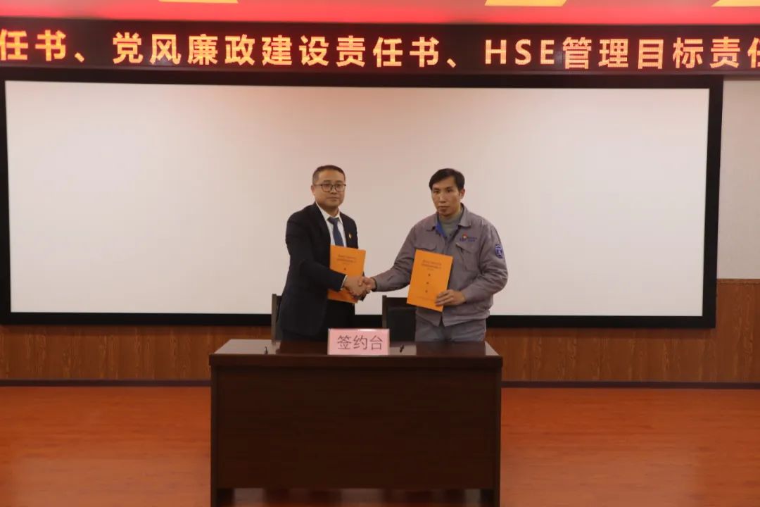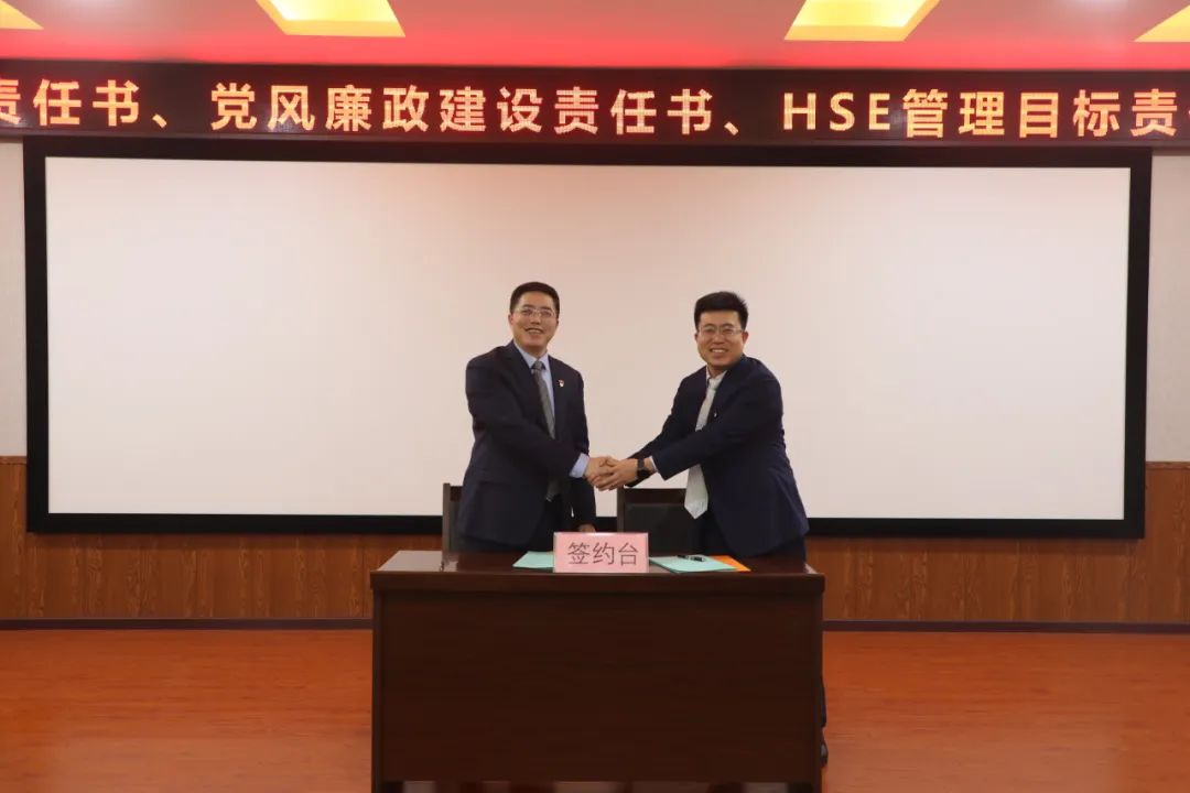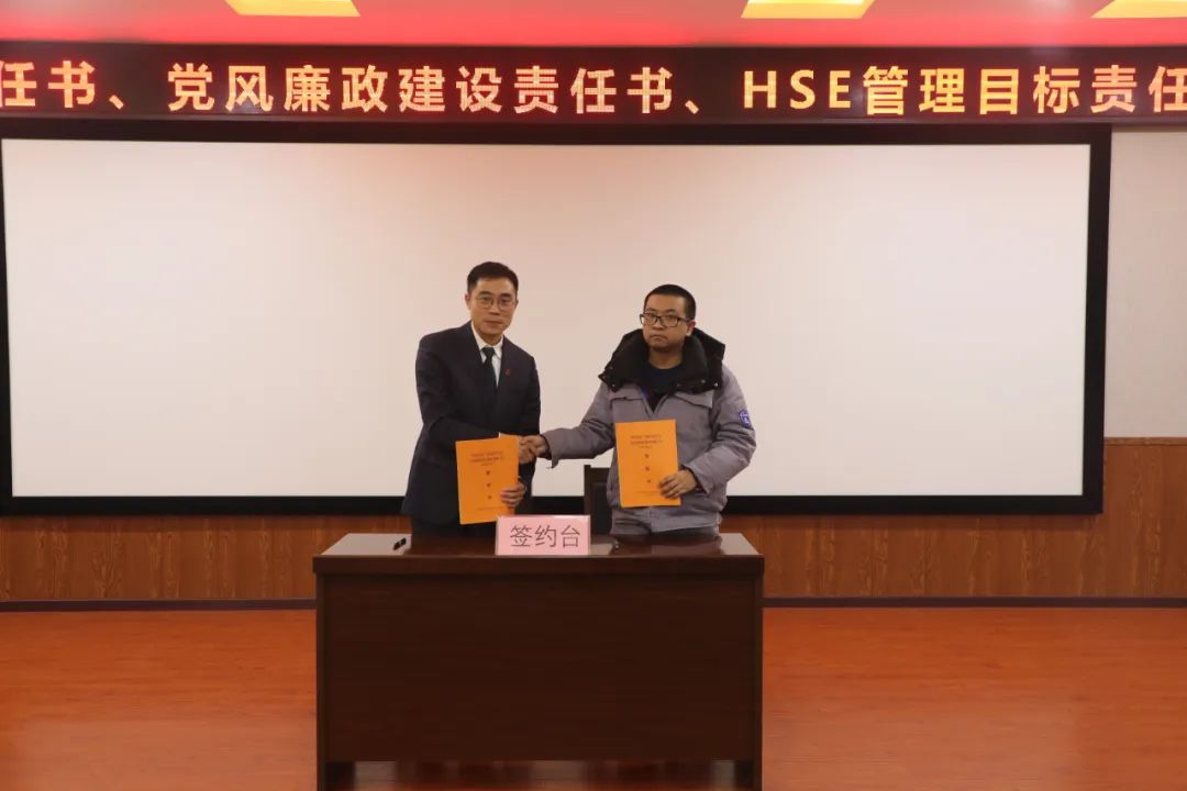 分管領(lǐng)導(dǎo)與中層干部簽訂《2023年目標(biāo)責(zé)任書》《2023年黨風(fēng)廉政建設(shè)責(zé)任書》和《HSE管理目標(biāo)責(zé)任書》