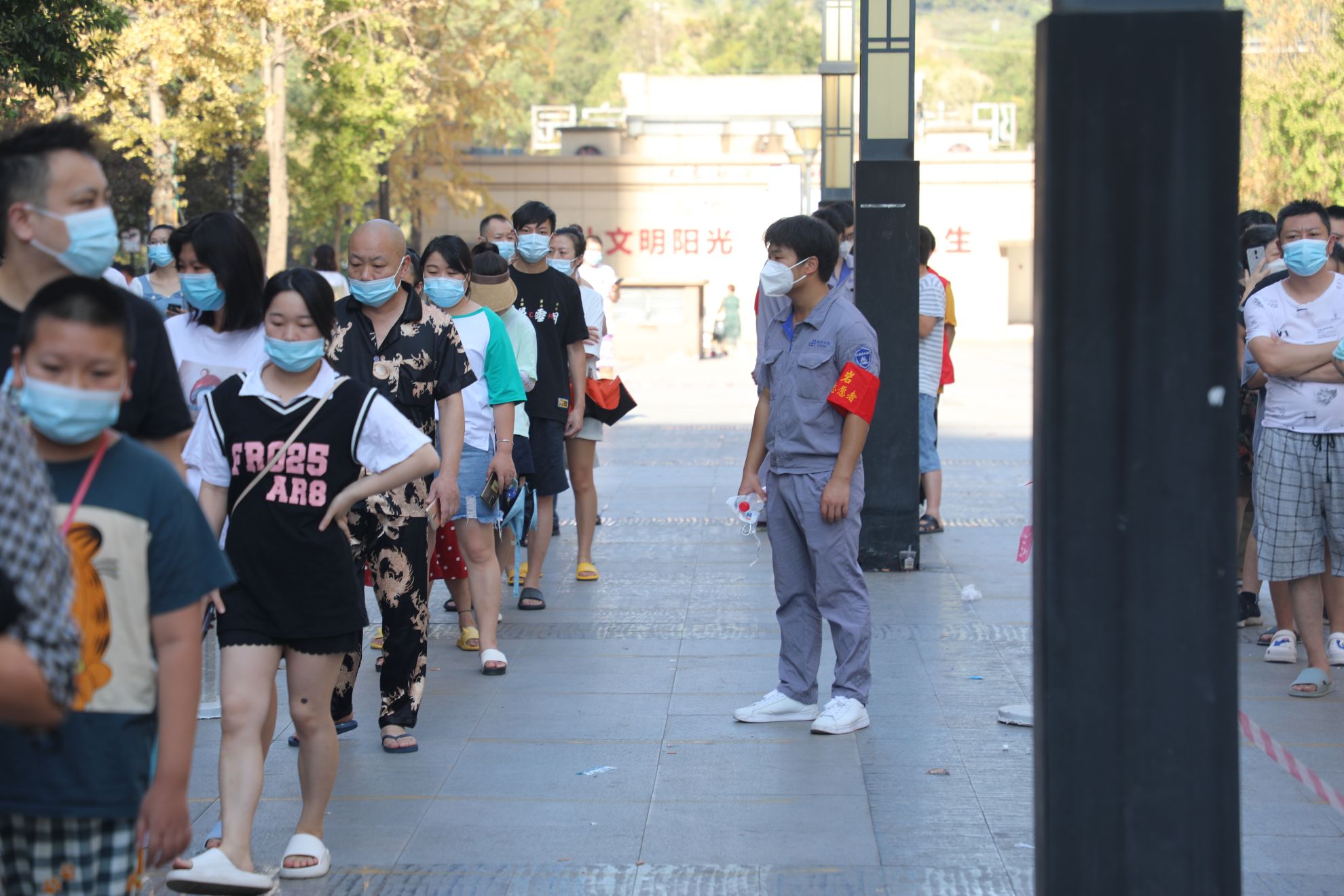 “請大家有序排隊,戴好口罩,保持間隔距離”。8月24日早上5點30分,集合完成的志愿者們在與社區(qū)工作人員迅速對接后,就前往各個檢測點各司其職,“志愿紅”成為人群中一道靚麗的風(fēng)景線。隨著太陽漸漸升起,地表溫度不斷升高,志愿者們不懼高溫,時刻提醒著居民們有序排隊、幫助老人打開核酸檢測碼、為居民解答各種疑惑、提醒注意事項,確保核酸檢測工作推進(jìn)迅速、進(jìn)展有序。