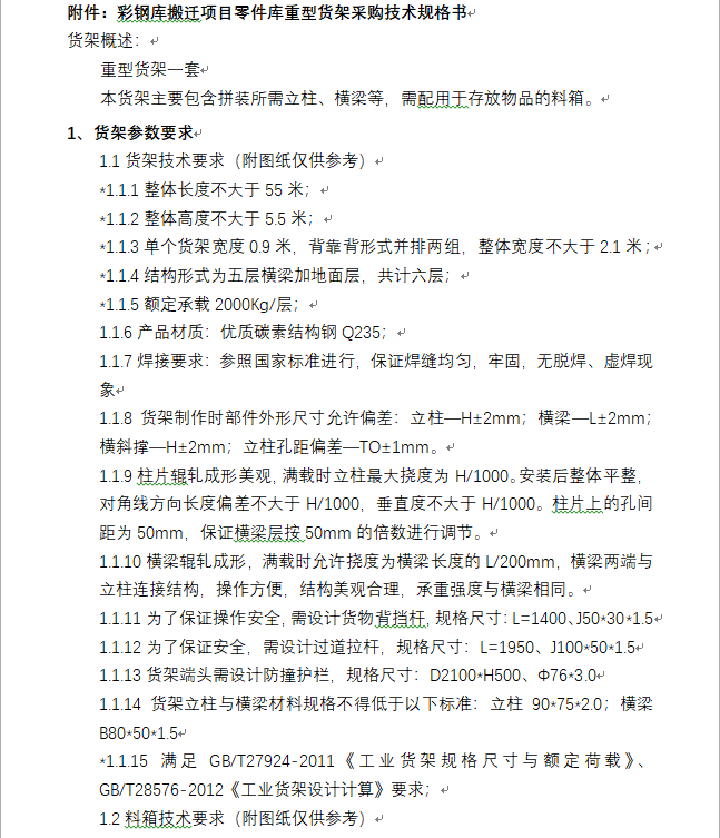 彩鋼庫(kù)搬遷項(xiàng)目 零件庫(kù)重型貨架采購(gòu) 招標(biāo)公告