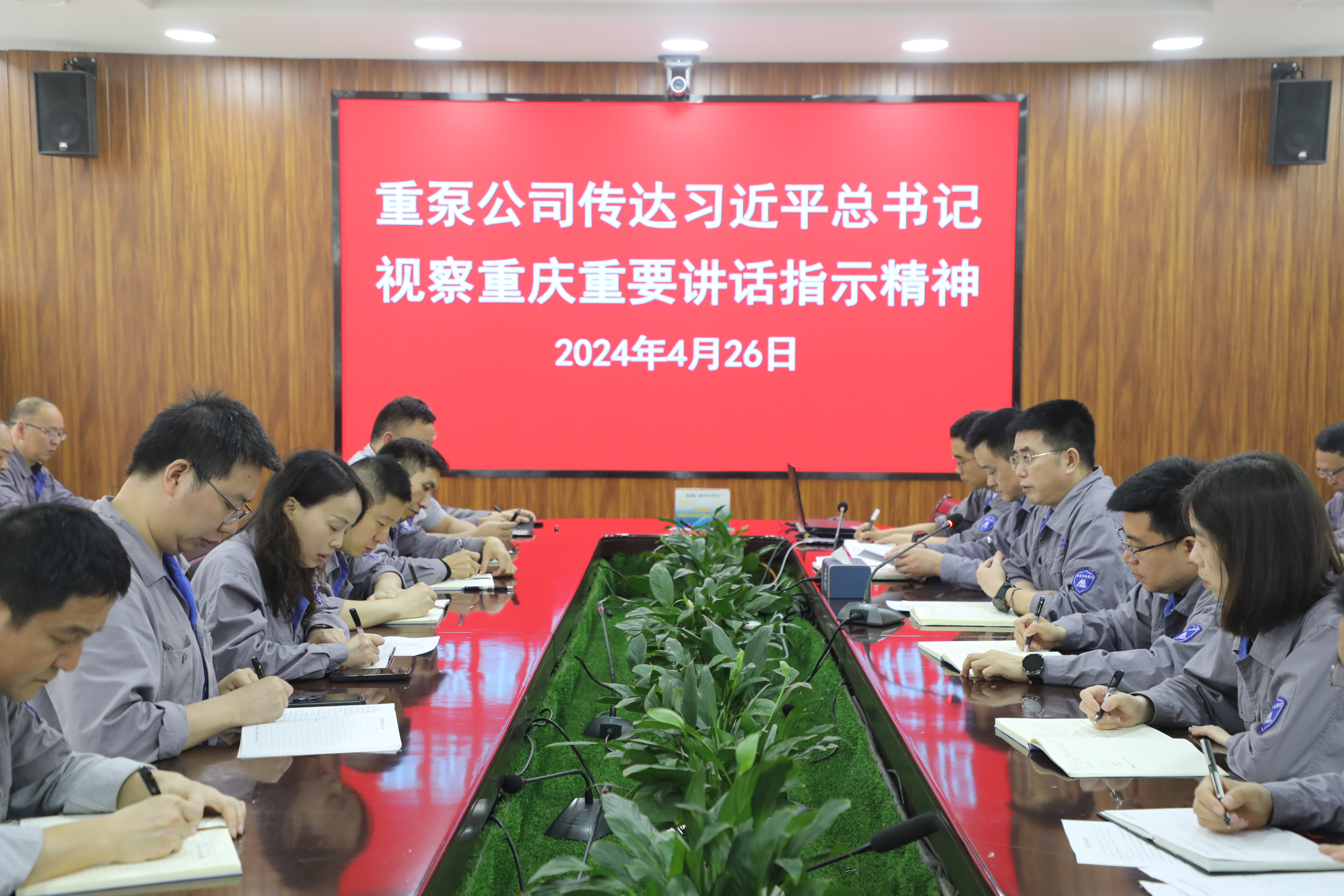 重泵公司召開干部會議傳達學習習近平總書記視察重慶 的重要講話重要指示精神