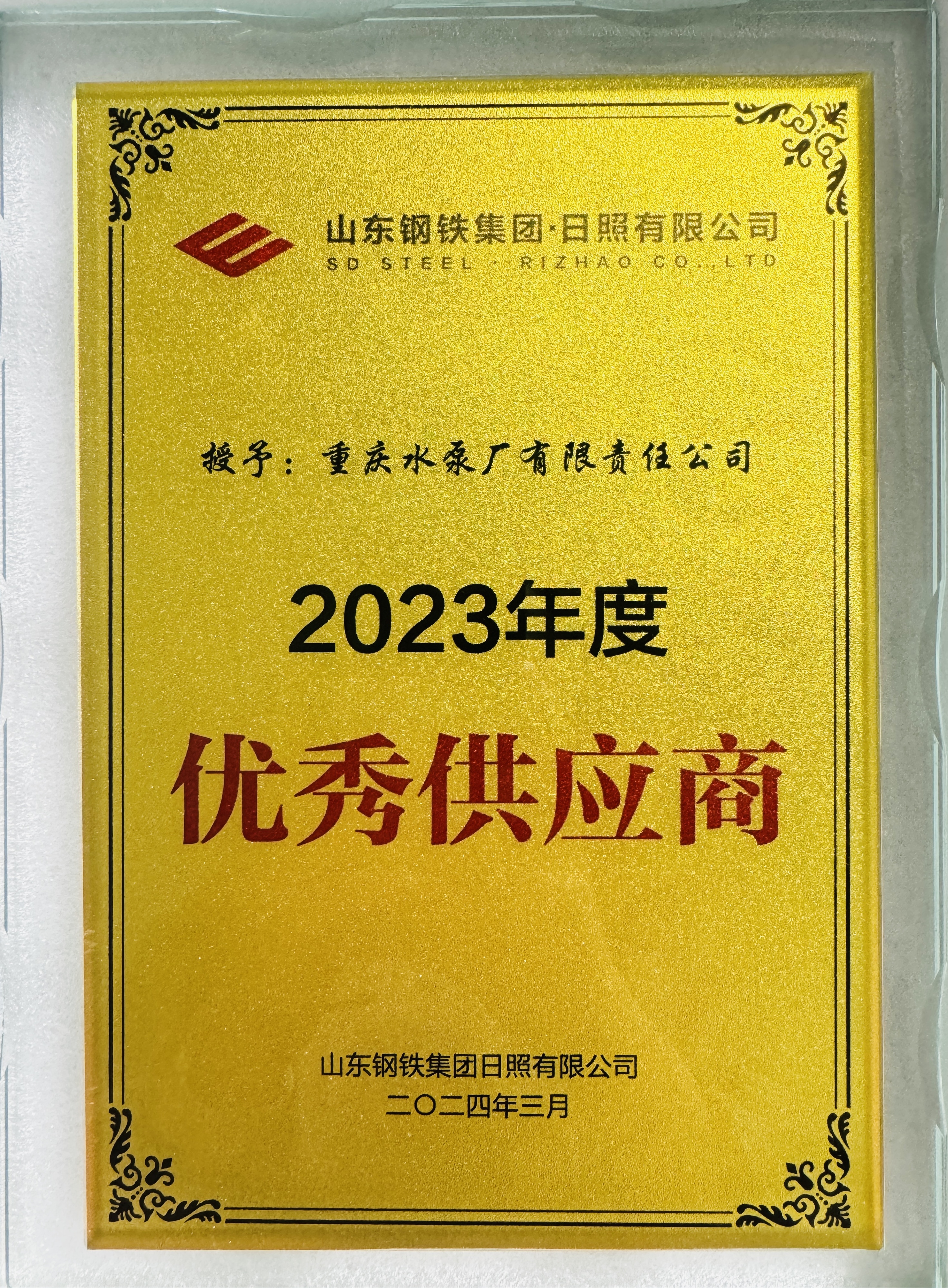 重泵公司獲評山東鋼鐵集團日照有限公司2023年度優(yōu)秀供應商