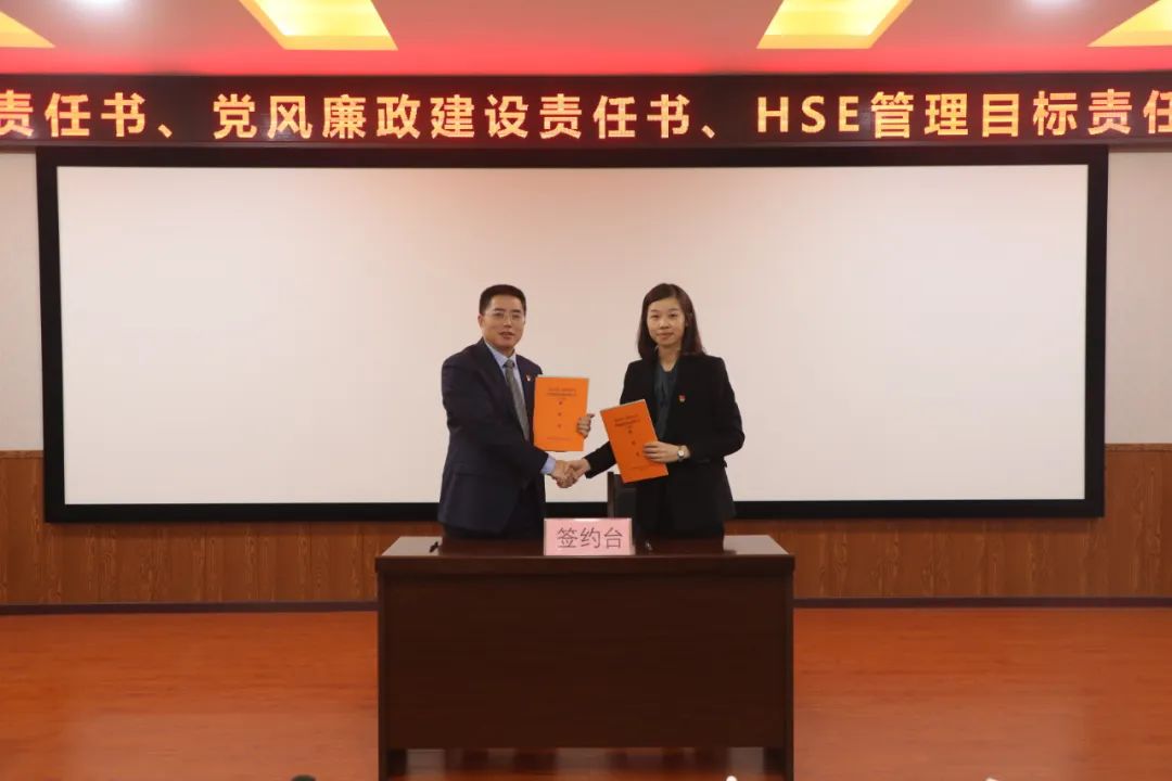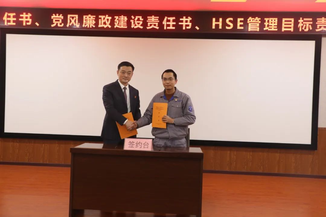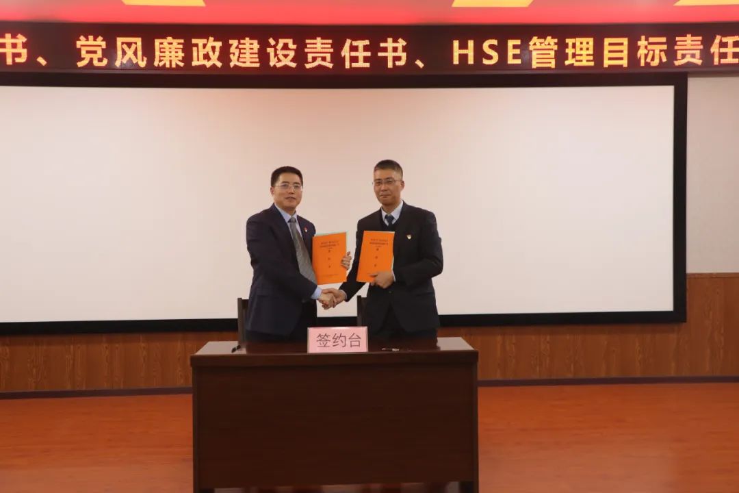 分管領(lǐng)導(dǎo)與中層干部簽訂《2023年目標(biāo)責(zé)任書》《2023年黨風(fēng)廉政建設(shè)責(zé)任書》和《HSE管理目標(biāo)責(zé)任書》